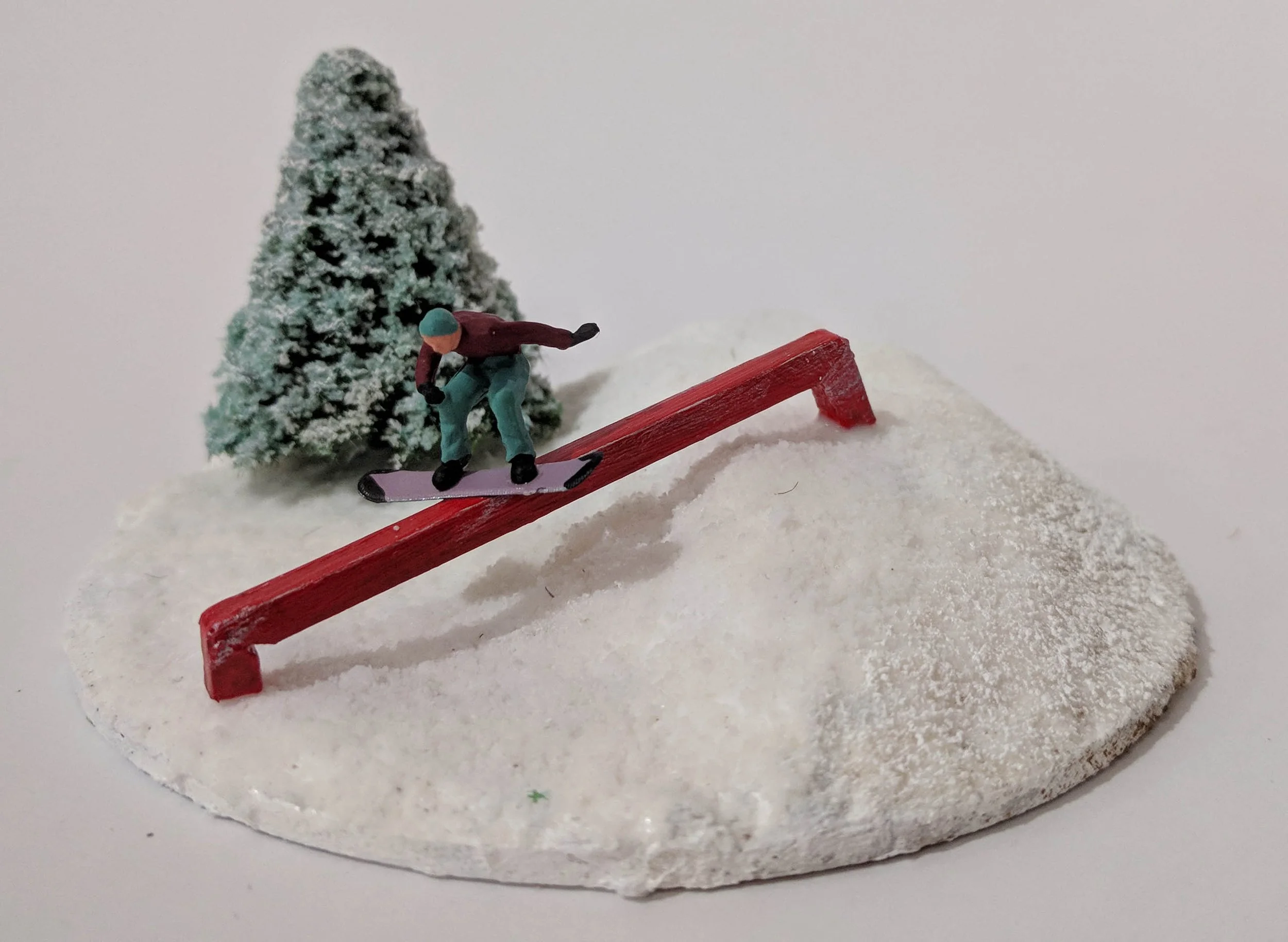 These are a series of miniature scenes made using H0 scale figures normally used for model railroads, as well as some 3d printed parts.